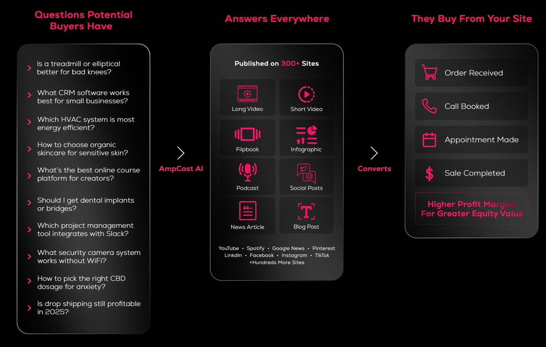Different buyers consume information differently. Some read long-form articles. Others watch YouTube videos while cooking dinner. Some listen to podcasts during their commute. A significant and growing segment asks ChatGPT directly for product recommendations. A multicasting strategy does not pick one format and hope for the best — it shows up in all of them. When one buyer topic gets transformed into videos, podcasts, articles, reels, infographics, blog posts, social posts, and flipbooks simultaneously, your brand stops being a single voice in one channel and becomes an omnipresent authority across the entire research landscape.