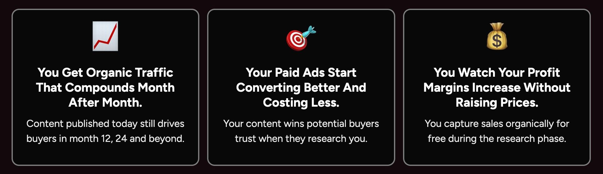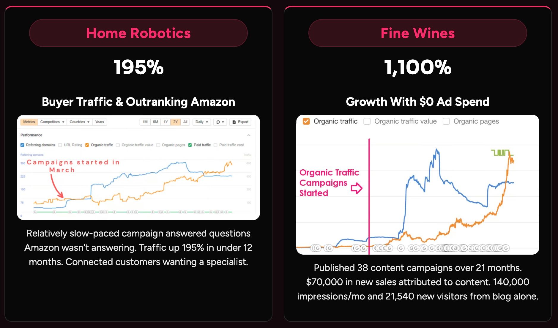 - Performance Compounding: Each published piece builds on previous content, strengthening domain authority and search visibility month over month