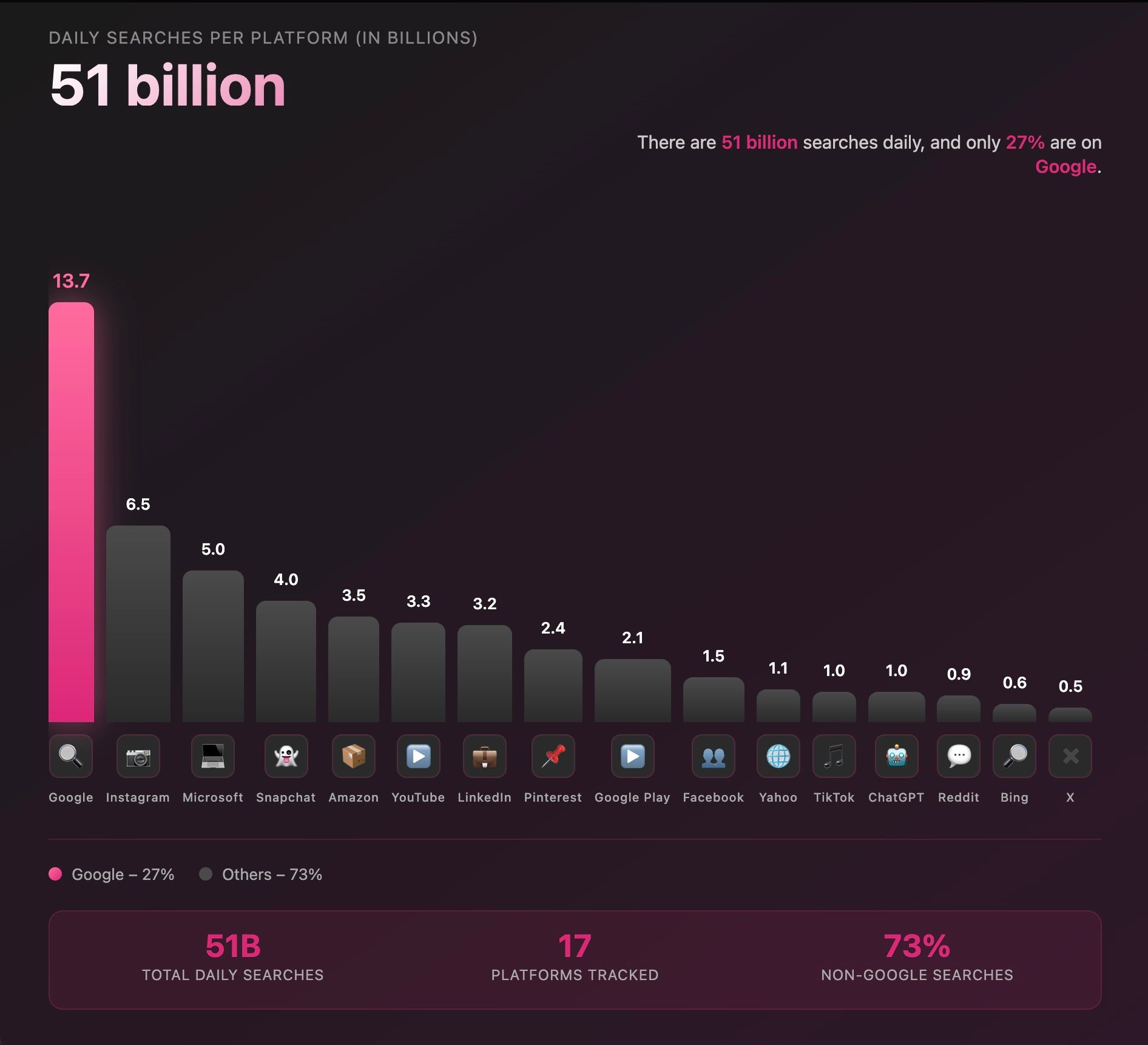 Google processes approximately 8.5 billion searches per day. But when you factor in YouTube, TikTok, Amazon, Pinterest, Reddit, ChatGPT, and every other platform where buyers actively search for information, the total daily search volume across the internet climbs to an estimated 51 billion queries. The brands publishing multicasted content across all of these platforms are fishing in every pond simultaneously. Brands running paid ads on one or two platforms are fishing in a single stream — and paying premium prices for every cast.